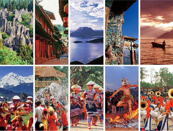 云南省建成一批以高山峡谷、现代冰川、高原湖泊、石林、喀斯特洞穴、火山地热、原始森林、花卉、文物古迹、传统园林及少数民族风情等为特色的旅游景区。