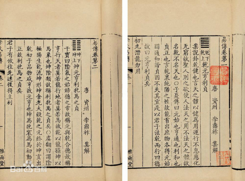 《周易》又称《易经》,分为经部和传部,经部之原名就为《周易》,是对四百五十卦易卦典型象义的揭示和相应吉凶的判断,而传部含《文言》、《彖传》上下、《象传》上下、《系辞传》上下、《说卦传》、《序卦传》、《杂卦传》,共七种十篇,称之为“十翼”,是孔门弟子对《周易》经文的注解和对筮占原理、功用等方面的论述。 [4]