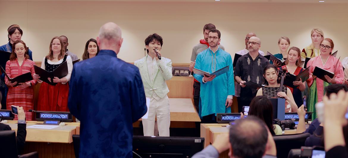 2024年4月18日,周深前往纽约联合国总部出席由中国常驻联合国代表团、联合国总部中文笔译处和联合国工作人员文娱理事会中国书会牵头举办的第十五届联合国中文日庆祝活动,献唱为第十五届联合国中文日专门创作的交响诗《和平颂》,表达对和平的祈愿,还演唱了代表作《大鱼》《等着我》,并参与圆桌讨论 [675-677]。
