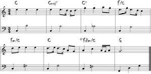 后期巴罗克时代在这一时期中,器乐写作得到更大的发展,建立在大、小调和声体系基础上的自由复调音乐是主要的织体形式。继续应用数字低音作为键盘乐器和声部分的写谱方法。和声作为构成曲式的要素,对于这一时期的乐曲结构,包括赋格曲、古二部曲式、早期奏鸣曲式等,均有重要作用,形成了调性布局的规律:大调乐曲先转至属大调,以后再转向其他近关系调;小调乐曲先转至属小调或平行大调,以后再转向其他近关系调。在转调布局中注意到调性的功能与色彩的对比。小调乐曲结束的主和弦常用大三和弦,称辟卡迪三度,这种方法自16世纪后半叶得到普遍应用起,一直延续到18世纪中叶。