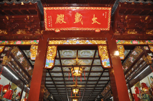父母殿:城隍殿东首为父母殿,殿内供奉上海县城隍神父母。城隍父秦良颢(1278~1355),字信甫,号述斋。师从萧氏,搜集蒙古文史传故事及时务功要者三百余条,编译成汉文的知识大全《纂通》;又掇拾师言,兼采别说,辑成《一贯》,并取蒙古及维吾尔问答之言,编成《吹万集》。他是极为难得的汉人出身的蒙古文专家。当时,汉人学蒙古文者无出其右,因此他年纪轻轻就出任国子监学录,而他“淡然无求进意,隐居教授,户外之屦至,无所容达。官大人至者,莫不晋谒,与之语,动中肯綮,而适于事情未尝 不为之叹服也”,“其平时一言一动,无不揆乎道义,人皆称笃行君子焉”。大德年间(1297~1307),秦良颢经翰林寇学士推荐,进万言策,由国子监学录提升为浙西榷鹾使。于是,秦良颢举家南下返回上海地区。