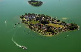基姆湖中有三个岛,分别是男人岛、女人岛和至今无人居住的香草岛。最大的岛屿就是男人岛,因岛上有座“男人修道院”而得名。这个岛屿之所以闻名主要是因为路德维希二世在这里建造了一座宫殿,其风格仿效法国著名的凡尔赛宫。
