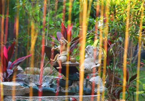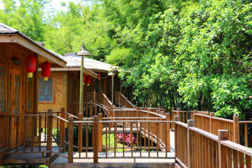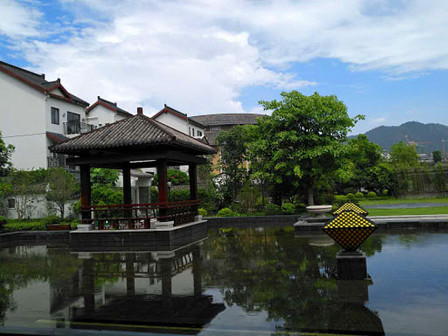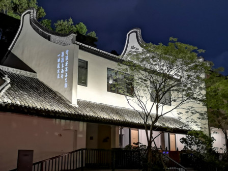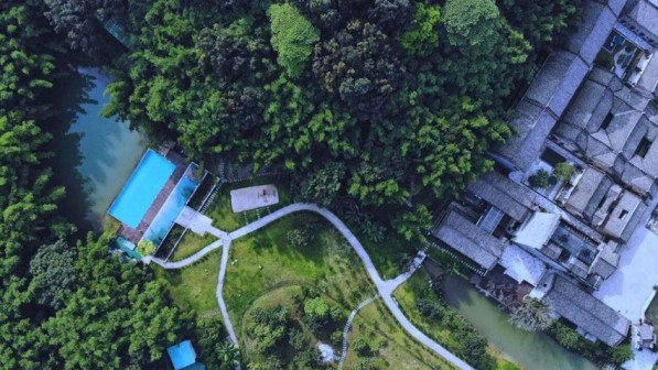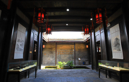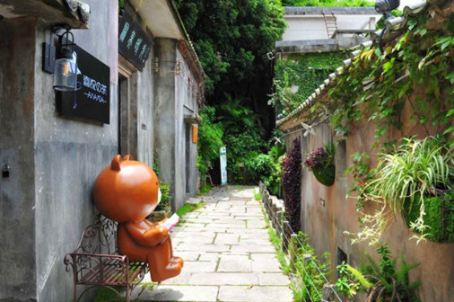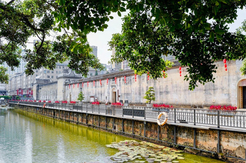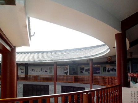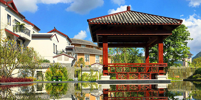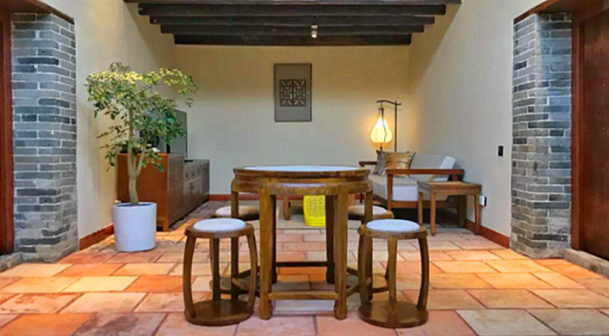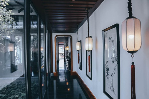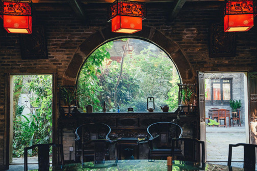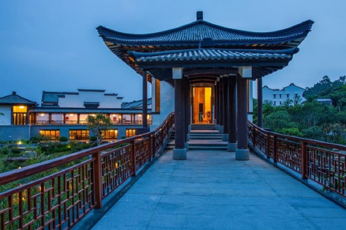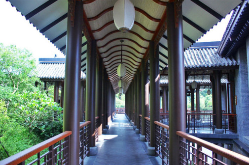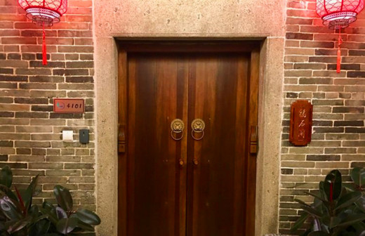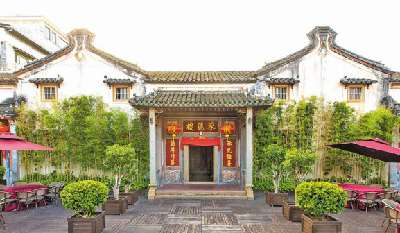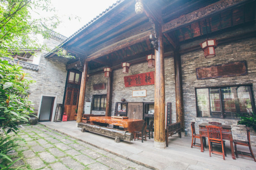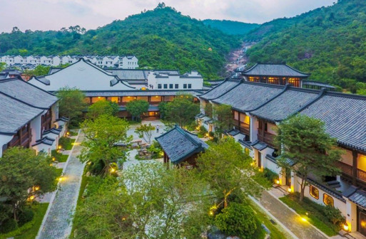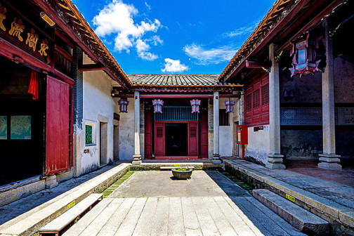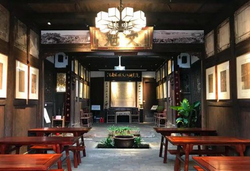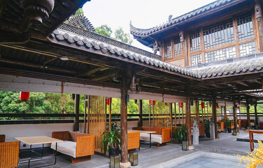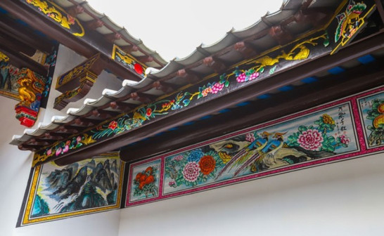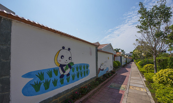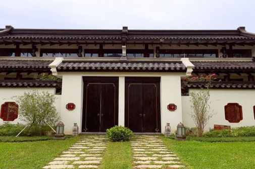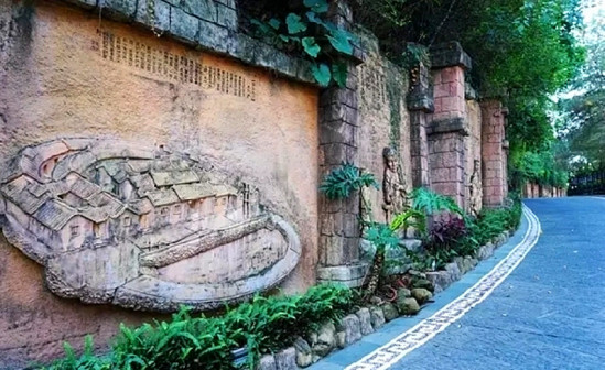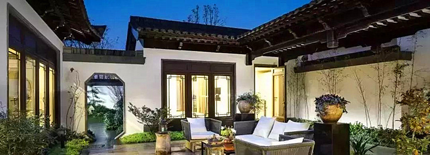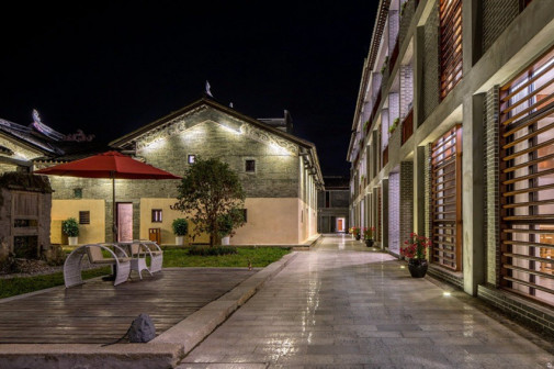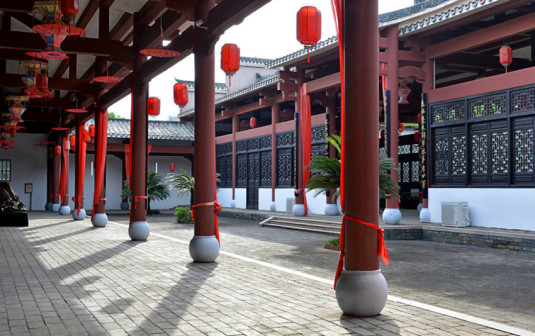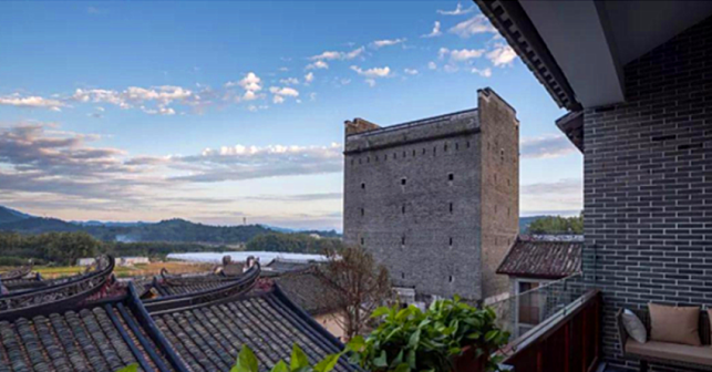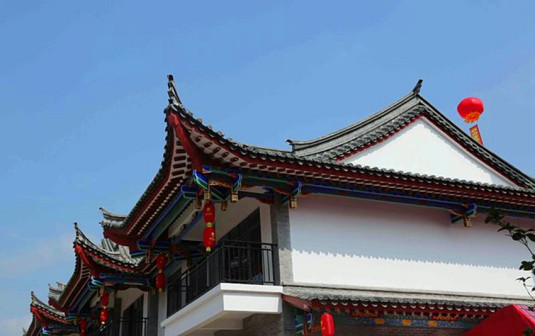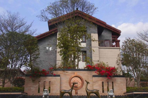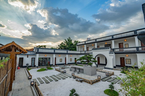 客家院子沿袭典型宋制庭院风格,围绕客家人“和”“兴”“文”“美”的文化精神作为内核,以手工雕刻的泥塑画龙点睛,形成“园林包围建筑”的自然生态文化景观,传统艺术与客家建筑相互交融,有种赏心悦目的建筑美。白墙、黛瓦、翠竹、碧水,构成一幅高雅幽静的画面,行走在一步一景的客家院子,观者皆被眼前的精美设计所折服,越往里走,越能看到精工匠造 [178]。