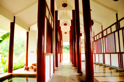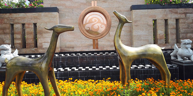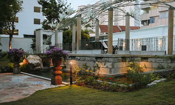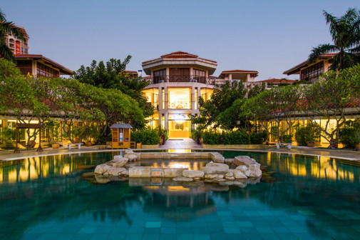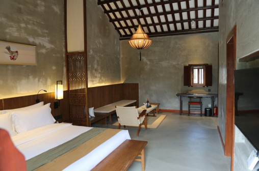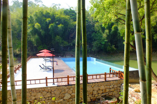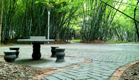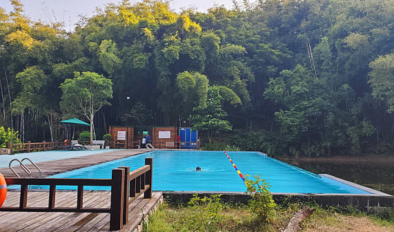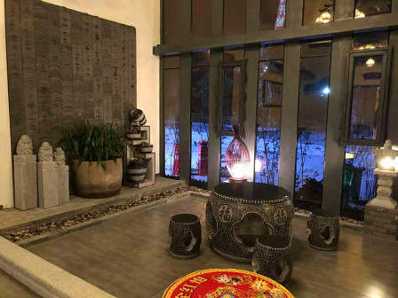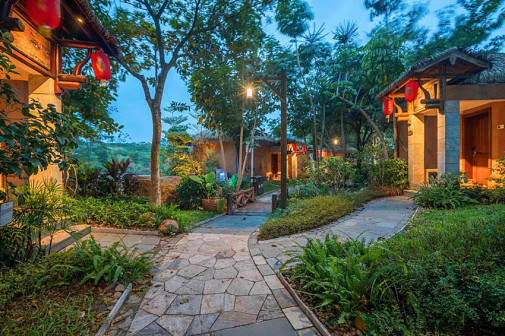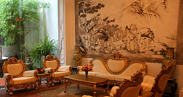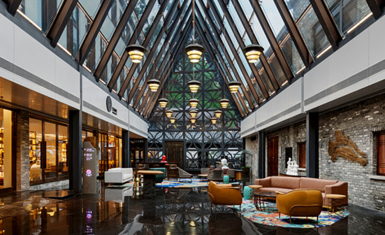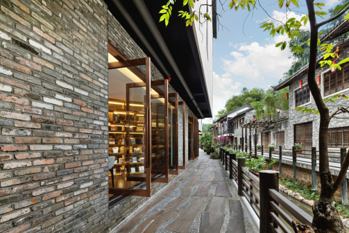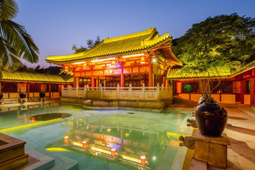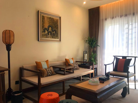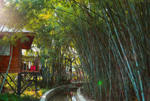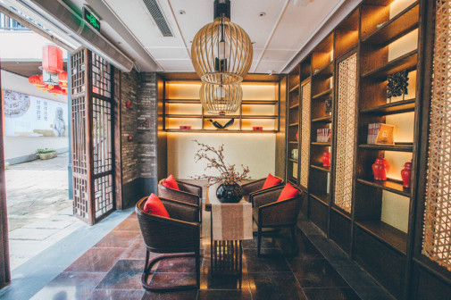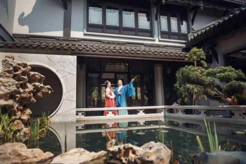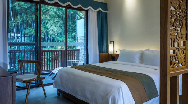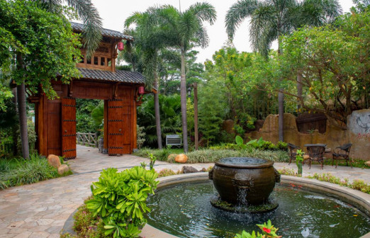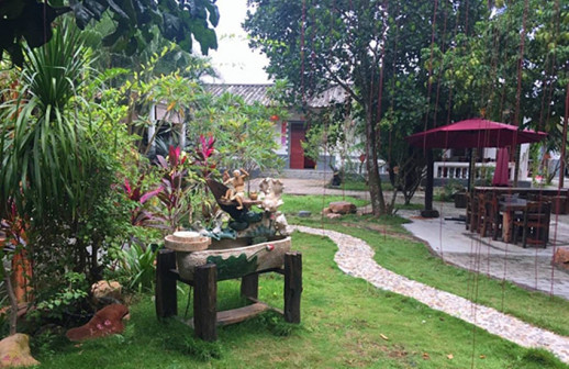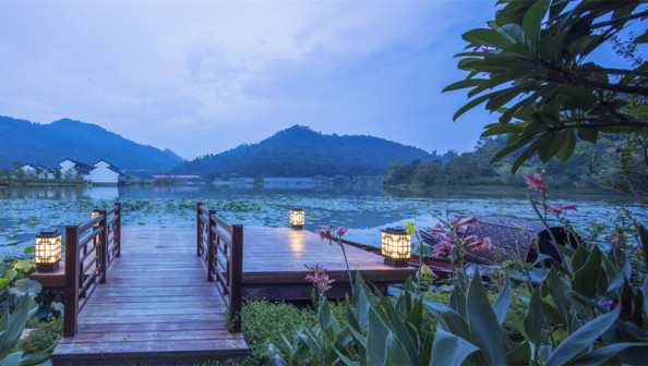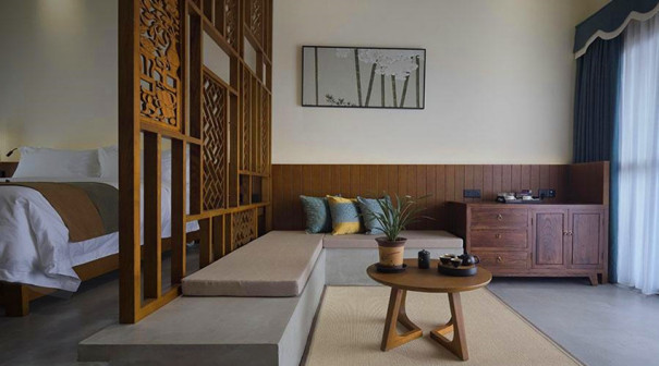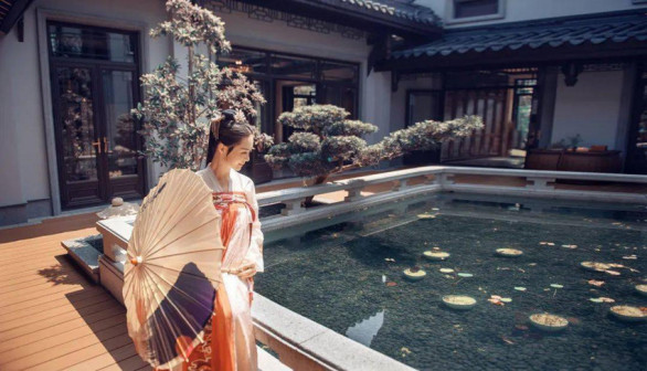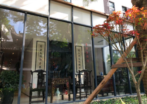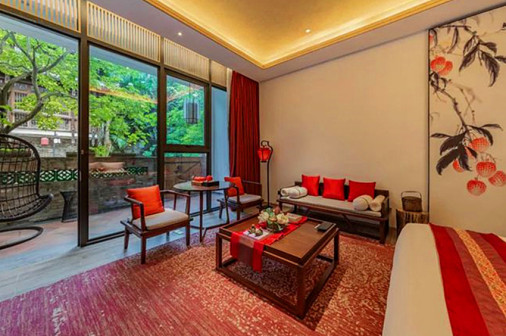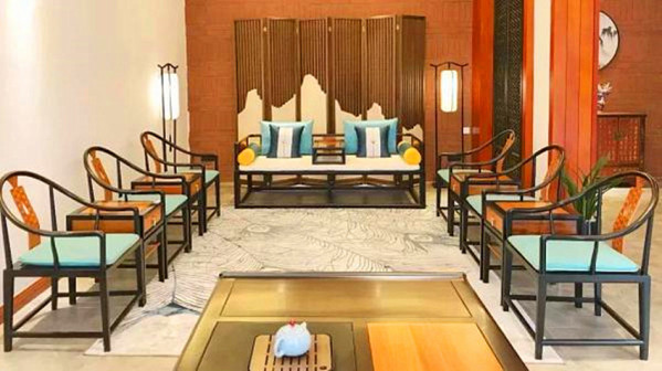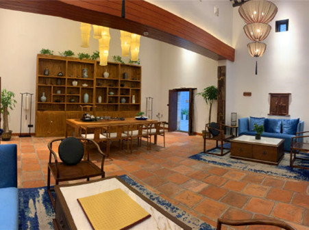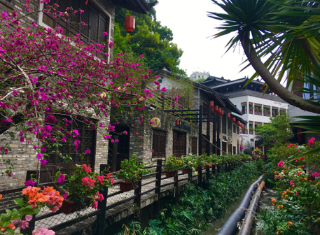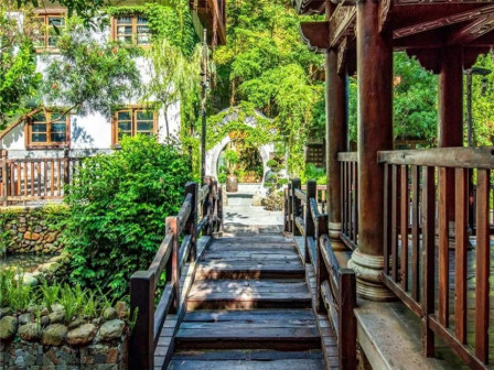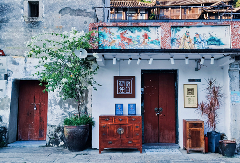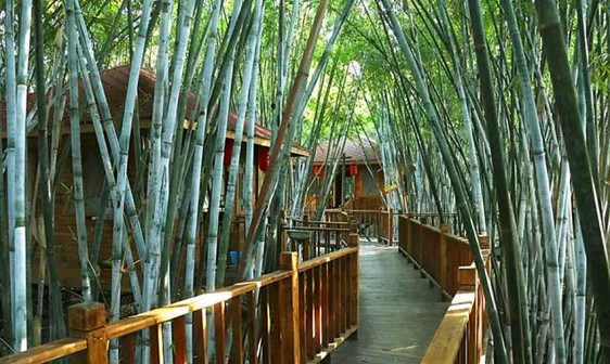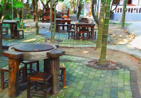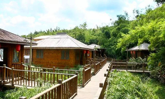 客家院子沿袭典型宋制庭院风格,围绕客家人“和”“兴”“文”“美”的文化精神作为内核,以手工雕刻的泥塑画龙点睛,形成“园林包围建筑”的自然生态文化景观,传统艺术与客家建筑相互交融,有种赏心悦目的建筑美。白墙、黛瓦、翠竹、碧水,构成一幅高雅幽静的画面,行走在一步一景的客家院子,观者皆被眼前的精美设计所折服,越往里走,越能看到精工匠造 [178]。