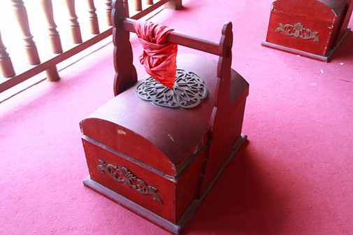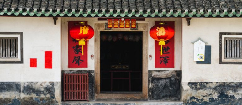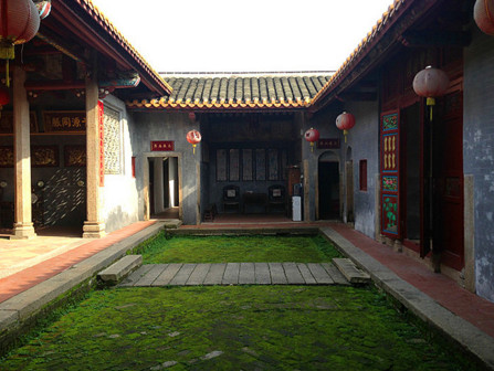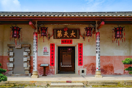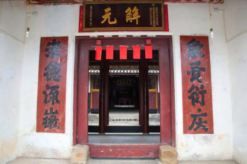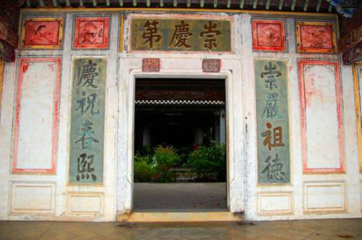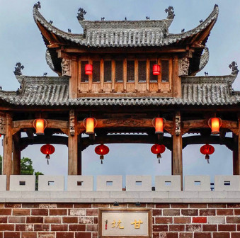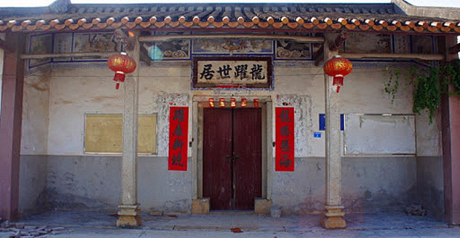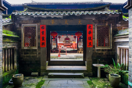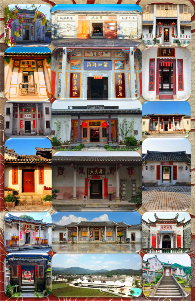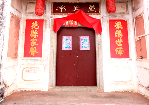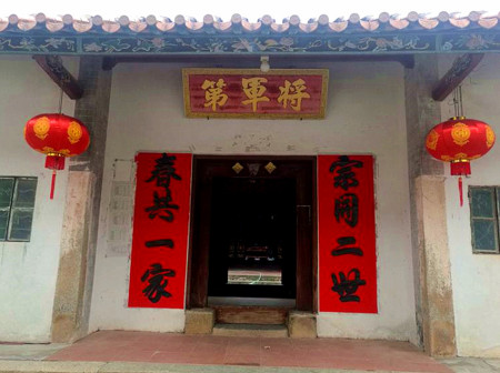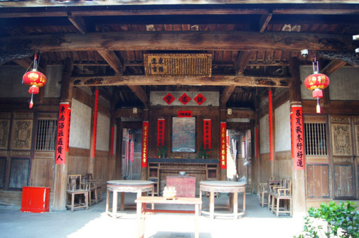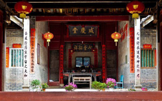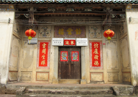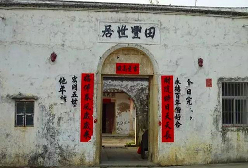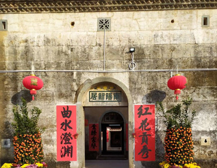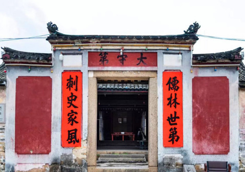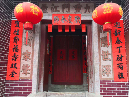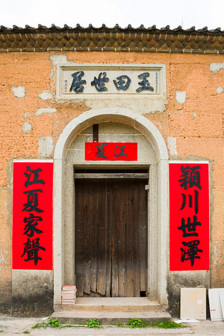 “清河堂张”、“陇西堂李”、“颍川堂陈” [202]或“江夏堂黄”堂号、姓氏的红灯笼挂在大门前,大门二边门柱上贴有“清河世泽,唐相家声” 、“ 龙门世德,柱史家声”、 “ 颍川世德,大史家声”、“江夏源流远,颍川世泽长”的堂联,就这堂联记录着这些姓氏人家的迁移、繁衍和发展的历程。客家先民由北南迁的千百年中,他们把客家姓氏、堂号写在红灯笼上是以怀念先祖之情和强烈族缘的一种体现 [148]。门匾起源于汉魏时期的“门第阀阅”,本是达官显贵用来标榜门户的功状,东晋以后被客家先民带到南方,演变为一种崇尚祖训、铭记历史、注重家教、爱惜名节的文化,历经千百年 [149]。