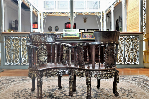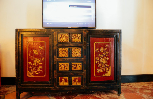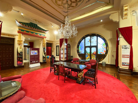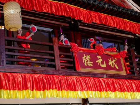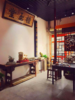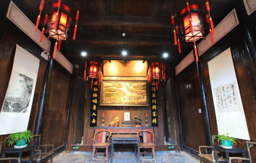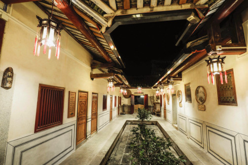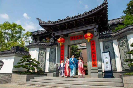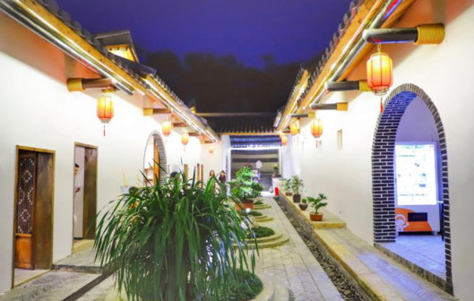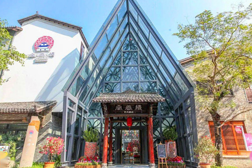 走进“客都人家”,古朴典雅的先贤堂首先映入眼帘,飞檐翘角,雕饰精美,建筑规制,让人眼前一亮。青砖灰瓦的客乡老街在先贤堂两侧延展开来,百年古宅、客家非遗匠艺体验、特色民宿等完美融合,与恢弘大气的《原乡》剧场连为一体,展现出别具一格的客家文化魅力 [168]。穿过老街,来到了张裕酒文化体验馆。张弼士是客商精神的代表人物,这里展现了张弼士推动中国葡萄酒工业化发展的全过程,全景式还原了张弼士的家国情怀、民族气节。距离张裕酒文化体验馆不远的客家美食博物馆,则是全球首个以“客家美食”为主题的博物馆,整个展馆分为“客家文化与美食”“客家餐具的展示”“客家饮食礼仪”等多个篇章。此外客乡老街还有汉剧馆、汉乐坊、木偶馆和埔寨纸花等共13个国家级、省级非物质文化遗产代表性项目展馆 [169]。