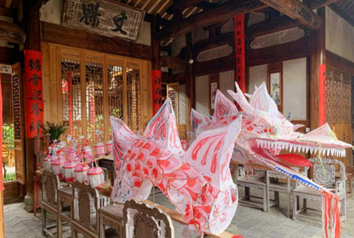 手扎工艺:客家手扎工艺品种繁多,依物施艺,各具特色。主要有彩扎,灯扎,纸扎和花扎四种。
