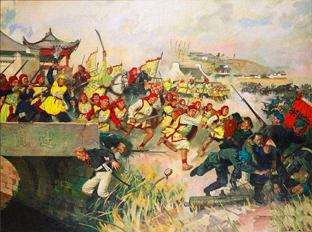 鸦片战争后,清朝国内阶级矛盾空前激化,农民起义风起云涌。1851年,洪秀全发动了金田起义,并建立了太平天国政权;1853年,太平天国定都天京,颁布了《天朝田亩制度》;1856年,太平天国军事上达到了全盛时期;领导集团内部矛盾激化引发的天京事变大伤了太平天国的元气;1864年,太平天国运动失败。洪秀全领导的太平天国运动,体现了新时代农民战争的特点。太平天国的一些领导人,开始向西方寻求真理,探索中国独立、富强的途径,勇敢地担负起反封建、反侵略的任务。太平天国运动是中国农民战争的高峰 [145]。