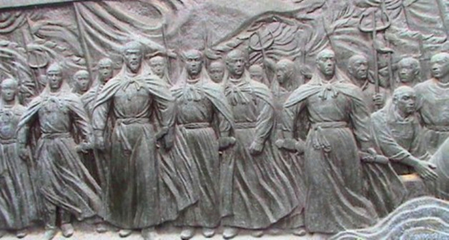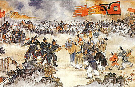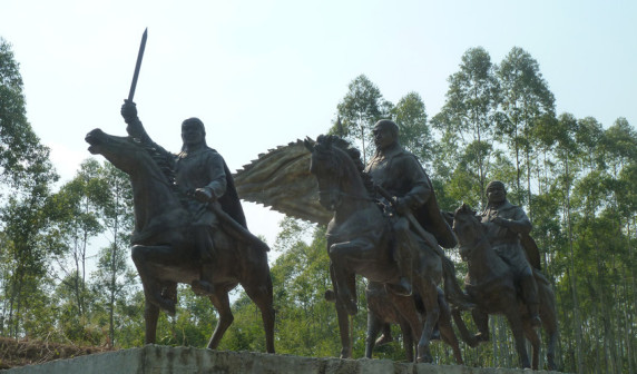 客家是汉民族中颇具血性的族群 [37]。从南宋末期开始,客家登上历史舞台(如蔡蒙吉),从宋末勤皇抗元,明末抗清,收复台湾,再到清末抗日抗法,无不带有客家人忠义、义无反顾的身影。近现代客家六次崛起,大批人杰促进了中国历史进程。这六次崛起,指的是:第一次被视为客家人的革命太平天国起义;第二次是客家人作为中坚之一的戊戌变法运动;第三次是客家人作为主体的辛亥革命;第四次是发生在客属地的土地革命;第五次是作为世界反法西斯战争的东部战场——中国的抗日战争;第六次则是人民共和国的创立,开国元戎中有一大批客家领袖与战将 [34]。