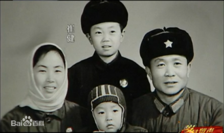 1961年8月2日,崔健出生于北京东郊幸福村的朝鲜族家庭 [16]。他的父亲遗憾儿子没能在八一建军节那天出生,曾把他的生日从8月2日改为8月1日。崔健的原名是崔建军,后来崔健认为这个名字没有个性,就改成了崔健 [17]。崔健的父亲崔雄济是个专业的小号演奏者 [18],母亲张顺化是朝鲜族舞蹈团的成员 [19-20]。他的父母汉语水平都不是很高,也造成了崔健童年时有口吃的毛病。随着崔雄济工作的调动,他的家庭先后住过幸福村、灯市口、空政文工团、空军学院,崔健的整个童年都是在父亲的军队的环境下长大的 [20]。崔雄济称崔健从小就对‘“自己不明白的事物有一种强烈的求知欲望。并且常常独自观察和思考 [21]”。