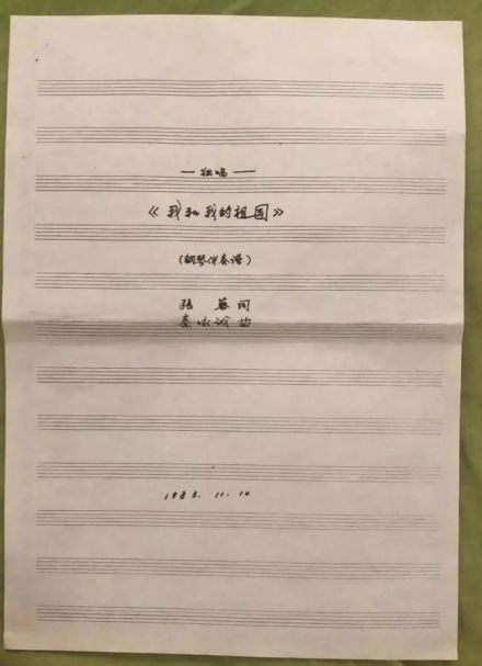 在网络流传的很多版本中都提出《我和我的祖国》创作于1984年或者1985年,秦咏诚之子秦际凯纠正说,准确应该是1983年末 [17]。根据秦际凯提供的手稿,这首歌的创作完成时间最晚是1983年11月10日 [15]。后来这首歌曲发表在1984年1月的《音乐生活》,是当期杂志的第三首歌曲 [17]。