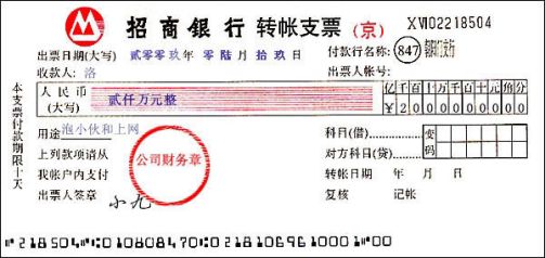 (6)收款单位转帐支票背面印章盖模糊了(此时票据法规定是不能以重新盖章方法来补救的),收款单位可带转帐支票及银行进帐单到出票单位的开户银行去办理收款手续(不用付手续费),俗称“倒打”,这样就用不着到出票单位重新开支票了。