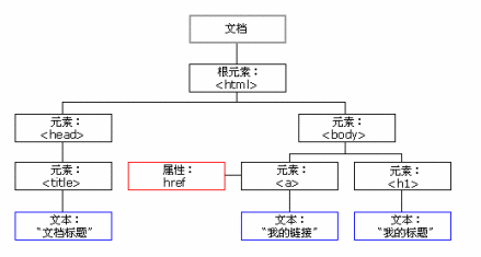 DOM分为HTML DOM和XML DOM两种。它们分别定义了访问和操作HTML/XML文档的标准方法,并将对应的文档呈现为带有元素、属性和文本的树结构(节点树),如图3所示: 1)DOM树定义了HTML/XML文档的逻辑结构,给出了一种应用程序访问和处理XML文档的方法。