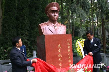 2009年4月3日,四川省都江堰市举行了清明祭扫烈士陵园活动暨武文斌烈士塑像揭碑仪式。烈士陵园里,高约两米的红色花岗石雕刻而成的武文斌半身塑像矗立着,“‘5·12’抗震救灾英雄烈士武文斌永垂不朽”十几个镏金大字,在塑像下闪烁着光芒。
