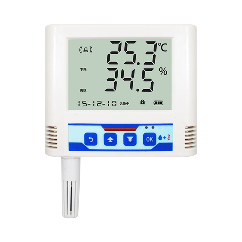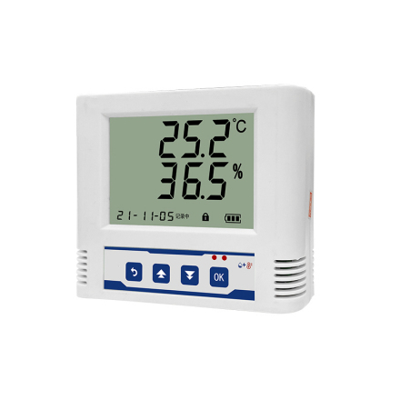 产品采用大屏液晶显示,具有温湿度上下限双控,限值自由设置,温度、湿度凭密码校准,网口数据传输等功能,内部集成报警功能模块(蜂鸣器或继电器),可实现高、低温报警和高、低湿报警。产品采用瑞士进口原装高品质温湿度测量单元,具有测量精度高,抗干扰能力强等特点,保证了产品的优异测量性能。