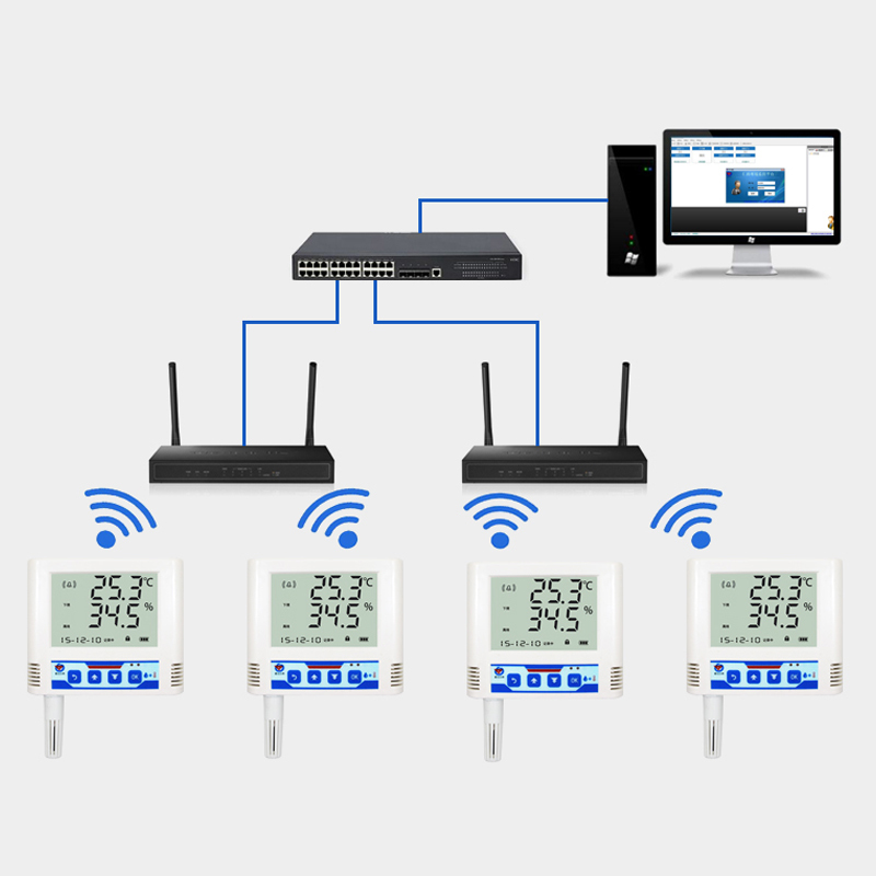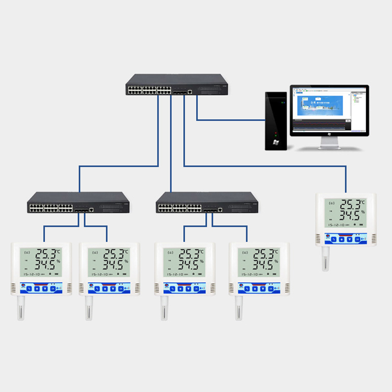 网络型温湿度传感器,可采集温湿度数据并通过以太网/WiFi/GPRS方式上传到服务器。充分利用已架设好的通讯网络实现远距离的数据采集和传输,实现温湿度数据的集中监控。可大大减少施工量,提高施工效率和维护成本。