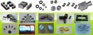 铁基纳米晶合金是由铁元素为主,加入少量的Nb、Cu、Si、B元素所构成的合金经快速凝固工艺所形成的一种非晶态材料,这种非晶态材料经热处理后可获得直径为10-20 nm的微晶,弥散分布在非晶态的基体上,被称为微晶、纳米晶材料或纳米晶材料。纳米晶材料具有优异的综合磁性能:高饱和磁感(1.2T)、高初始磁导率(8×104)、低Hc(0.32A/M), 高磁感下的高频损耗低(P0.5T/20kHz=30W/kg),电阻率为80μΩ/cm,比坡莫合金(50-60μΩ/cm)高, 经纵向或横向磁场处理,可得到高Br(0.9)或低Br 值(1000Gs)。是当前市场上综合性能最好的材料;适用频率范围:50Hz-100kHz,最佳频率范围:20kHz-50kHz。广泛应用于大功率开关电源、逆变电源、磁放大器、高频变压器、高频变换器、高频扼流圈铁芯、电流互感器铁芯、漏电保护开关、共模电感铁芯。
