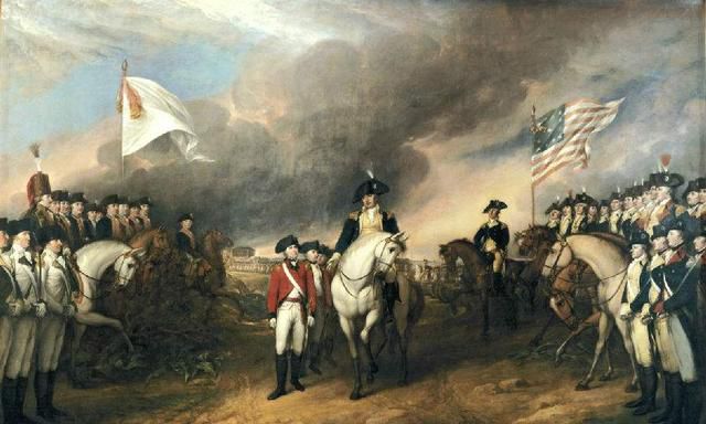 在联军炮火的猛烈轰击之下,康沃利斯走投无路,于1781年10月17日即伯戈因投降的第四个周年纪念日,请求进行投降谈判。10月19日,8000名英军走出约克敦,当服装整齐的红衫军走过衣衫褴褛的美军面前一一放下武器时,军乐队奏响了《地覆天翻,世界倒转过来了》的著名乐章。