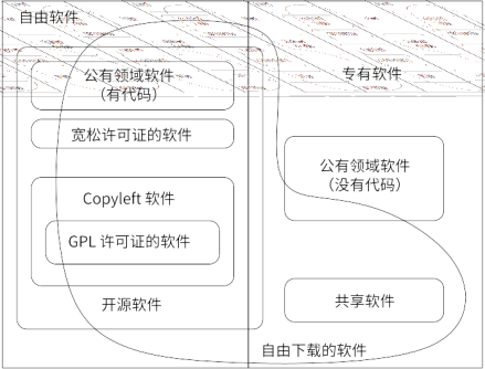 实际上,开源的标准比自由软件要弱一些。基本上所有的自由软件都算是开源软件。几乎所有开源软件也都是自由软件,但也有例外。首先是一些开源许可证过于严苛,因此并不能认定为是自由许可证。比如“Open Watcom”的许可证就不是自由的,因为它不允许将修改后的软件私人使用。幸运的是,只有很少一些程序使用这样的许可证。