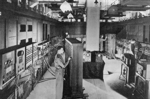 1946年2月14日,由美国军方定制的世界上第二台电子计算机“电子数字积分计算机”ENIAC(Electronic Numerical Integrator And Computer)在美国宾夕法尼亚大学问世了 [6]。ENIAC(中文名:埃尼阿克)是美国奥伯丁武器试验场为了满足计算弹道需要而研制成的,这台计算器使用了17840支电子管,大小为80英尺×8英尺,重达28t(吨),功耗为170kW,其运算速度为每秒5000次的加法运算,造价约为487000美元。ENIAC的问世具有划时代的意义,表明电子计算机时代的到来。在以后60多年里,计算机技术以惊人的速度发展,没有任何一门技术的性能价格比能在30年内增长6个数量级。