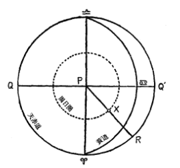 天文学家因此以地面观测点作为中心,以无限长为半径,在宇宙空间作了一个假想的圆球,称为“天球”。地球的赤道面无限扩大与天球相交的大圆即天赤道。天赤道平面和黄道平面并不重合,它们之间约有23°26'的夹角,俗称“黄赤交角”。此外,天赤道和黄道有两个交点,即春分点和秋分点。太阳沿黄道,从南半天球进入北半天球的那个交点称为春分点,太阳由北半天球进入南半天球的那个交点称为秋分点。
