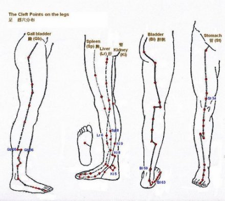 当出现急性胃疼时应立即想到梁丘穴,用拇指指腹用力按压该穴,持续2-5分钟,往往可以立即止疼;孔最穴,这可是治疗内脏出血的郗穴,使用时可用母指腹尖适度用力按压该穴;当有尿血症时,要马上想到水泉穴;女子崩漏、膝关节炎、疝气就找中都穴;急性腰痛时可随手取来养老穴;胆囊疼痛了就快按外丘穴;凡遇心动过速、心绞痛等心胸疾患那就是郄门穴的事了,按压的时间同前;外丘和阳交穴治疗急性头疼再好不过了;当出现头疼、咽喉肿痛、肠鸣腹疼的时候就选温溜穴;那么心疼、吐血、鼻出血怎么办?阴郗穴在等着你呢,平时经常按压此穴还可预防和治疗心脏疾病;地机穴,可治疗腹胀、腹疼,泄泻,这个穴位按压时间要长些,5分钟;筑宾穴,可治疗恶心呕吐;交信穴,可治疗月经不调、痢疾、肠炎;承浆穴,可治疗休克昏迷、口眼歪斜、齿龈肿疼。至于梁丘穴配中脘穴治疗急性胃炎;孔最穴配膻中穴治疗气逆吐血等。