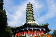 | 琉璃塔 | 琉璃塔在香山公园宗镜大昭之庙西部山腰,为该庙组成部分。清乾隆四十五年(1780年)建,高约30米,七级八角密檐式。塔顶安黄色琉璃宝瓶和八条檐脊。塔底由八面张开的伞盖承托,周饰汉白玉雕栏。最下层为石砌八角形塔基。层层檐端缀有铜铃 [33] 。 | |