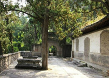 | 知松园 | 知松园位于南北主要游览干道西侧,占地2公顷,是1987年新辟建的景区。景区内一、二级古松柏100余株。在景区之东立宽1.5米,长2.5米,高5.5米巨石一块,正面书直径为0.8米的“知松园”三字,石背录陈毅诗“大雪压青松,青松挺且直,欲知松高节,待到雪化时”。知松取意于《论语·子罕》“岁寒然后知松柏之后凋也”。景区内有古松同琉璃塔形成借景,命名为“琼松塔影”。 | |