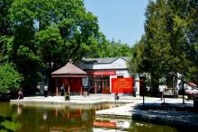 | 见心斋 | 见心斋位于公园内北门内西侧,这里是惟一的一处保存较好的古迹。始建于明嘉靖元年(1522),清嘉庆元年(1796)重修。传说是皇帝鉴证大臣是否对他忠心的地方,故名见心斋。院内半圆形水池三面环以围廊彩画,正殿见心斋正对知鱼亭,斋后为正凝堂 [34] 。 | |