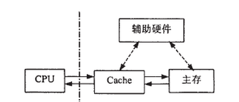 当用虚地址访问主存时,机器自动地把它经辅助软件、硬件变换成主存实地址。查看这个地址所对应的单元内容是否已经装入主存,如果在主存就进行访问,如果不在主存内就经辅助软件、硬件把它所在的那块程序和数据由辅存调入主存,而后进行访问。这些操作都不必由程序员来安排,也就是说,对应用程员员是透明的。 主-辅存层次解决了存储器大容量要求和低成本之间的矛盾。 在速度方面,计算机的主存和CPU直保持了大约一个数量级的差距。显然这个差距限制了CPU速度潜力的发挥。为了弥合这个差距,仅采用一种工艺的单一存储器是行不通的,必须进一步从计算机系统结构和组织上去研究。设置高速缓冲存储器(Cache)是解决存取速度的重要方法。在CPU和主存中间设置高速缓冲存储器,构成高速缓存(Cache)-主存层次,要求Cache在速度上能跟得上CPU的要求。Cache-主存间的地址映象和调度吸取了比它较早出现的主-辅存存储层次的技术,不同的是因其速度要求高,不是由软、硬件结合而完全由硬件来实现,如图所示。