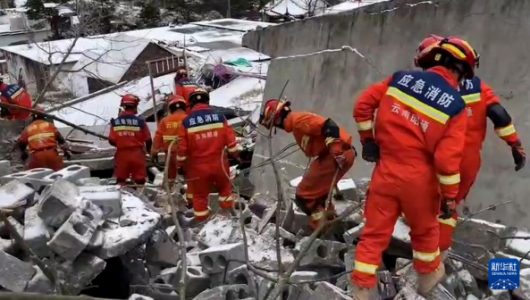 2024年1月23日,云南雄镇县山体崩塌救援现场,消防员争分夺秒搜寻被困者,但扒开废墟的这一幕令人看破防,一对六旬夫妻躺在床上,紧紧拉住彼此双手 [42]。