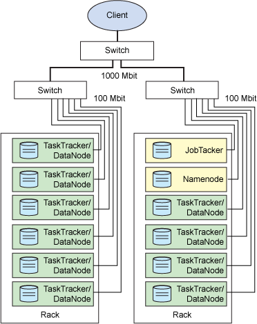 Hadoop 框架可在单一的 Linux 平台上使用(开发和调试时),官方提供MiniCluster作为单元测试使用,不过使用存放在机架上的商业服务器才能发挥它的力量。这些机架组成一个 Hadoop 集群。它通过集群拓扑知识决定如何在整个集群中分配作业和文件。Hadoop 假定节点可能失败,因此采用本机方法处理单个计算机甚至所有机架的失败 [4]。