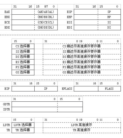 相当于高性能的16位8086微处理器,但进行了功能扩充,能够使用8086所没有的寻址方式和32位通用寄存器以及大部分指令。不具有保护机制,不能使用部分特权指令。实模式下只有20条地址线有效,存储空间为1MB。