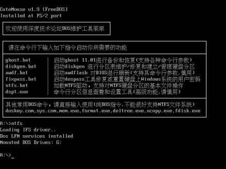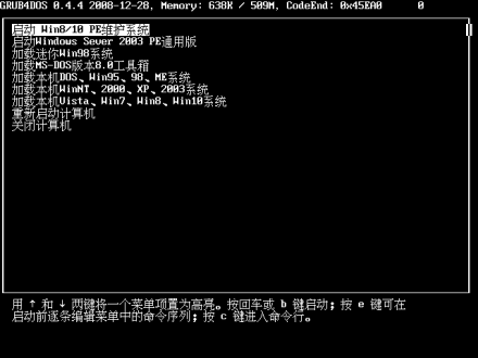 需要说明的是启动并进入DOS模式,要求磁盘要具有引导的能力(即具有三个系统文件,MSdos.SYS、IO.SYS和COMMAND,COM),如果要从硬盘启动,只要硬盘可以引导就行了, U盘、光盘也可以引导进入。